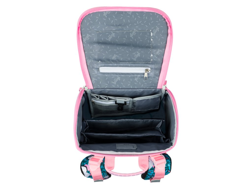 •Aktovka disponuje novým vyklápacím systémom otvárania na zips, vďaka ktorému sa školák ľahšie dostane k svojim pomôckam priamo z lavice a umožňuje lepší prehľad o obsahu školskej tašky.