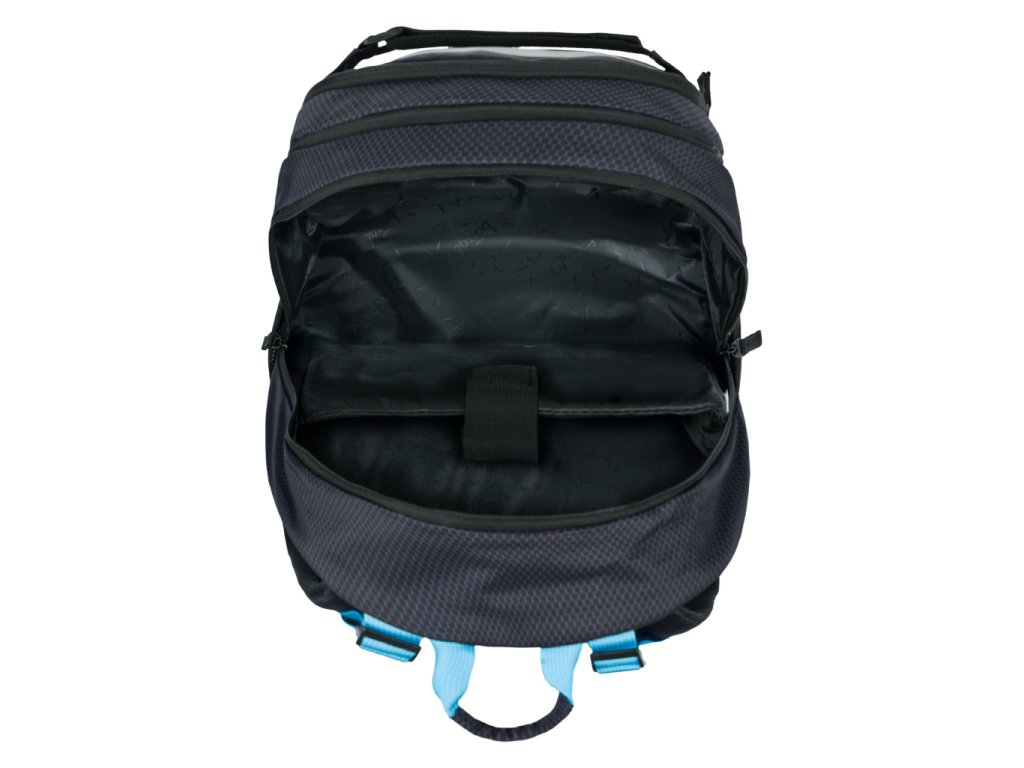 ŠKOLSKÝ BATOH SKATE BLUELIGHT• Školský ergonomický batoh s troma samostatne uzatvárateľnými komorami s vnútorným organizérom a kapsou na 15palcový notebook alebo tablet.
