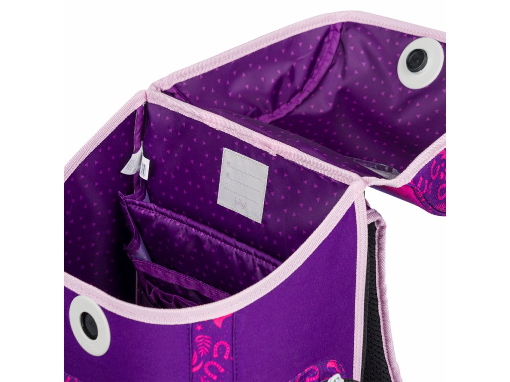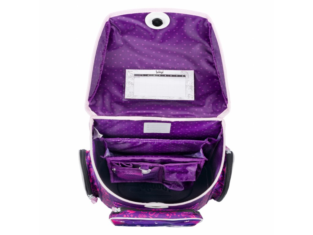 • Vnútri aktovky je priehľadná kapsa s rozvrhom a vnútorný organizér umožňujúci rovnomerné rozloženie hmotnosti.