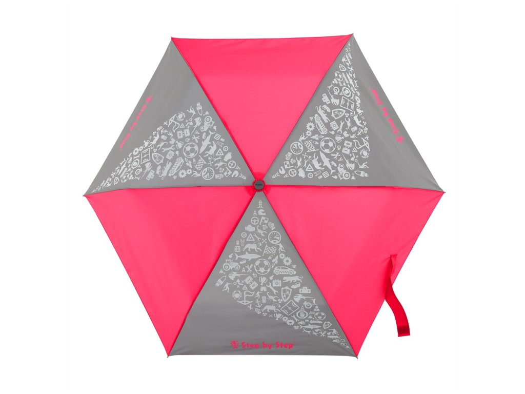 Detský skladací dáždnik s reflexnými obrázkami, neónová ružová
