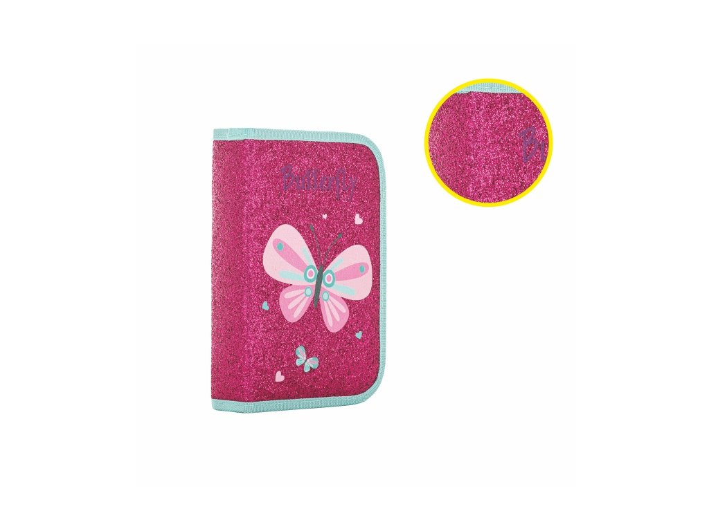 Peračník 1zip prázdny BUTTERFLY glitter PP