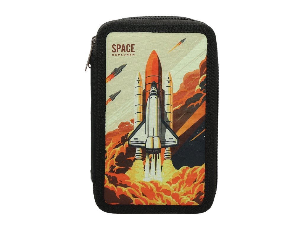 Školský trojposchodový peračník s gumovými úchytmi na ceruzky a perá a gumu s rozvrhom hodín. Peračník je prázdny.Rozmery: 20x13x8 cm