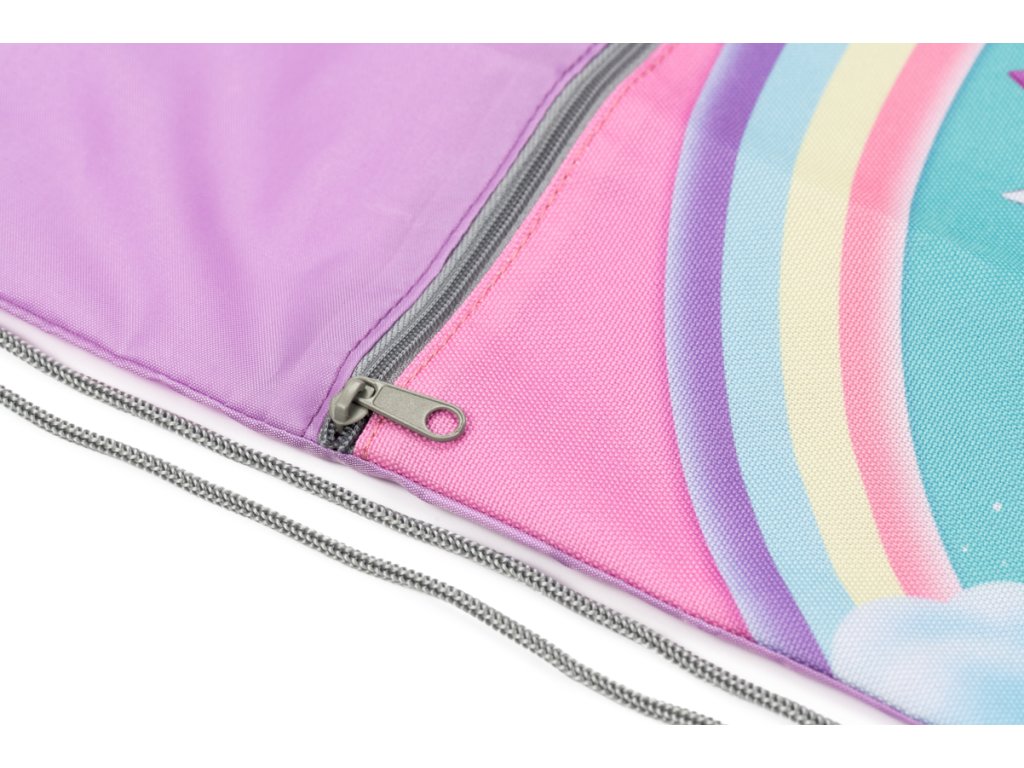 Sáčky na cvičky jsou praktickým doplňkem školní aktovky pro uložení přezůvek či věcí na tělocvik. Vodoodpudivý pevný materiál udrží věci v suchu. Kapsa na zip oddělí boty od ostatního oblečení. Stahovací šňůrka spojená se spodní částí promění sáček v malý batůžek na záda.Dodatočné parametre