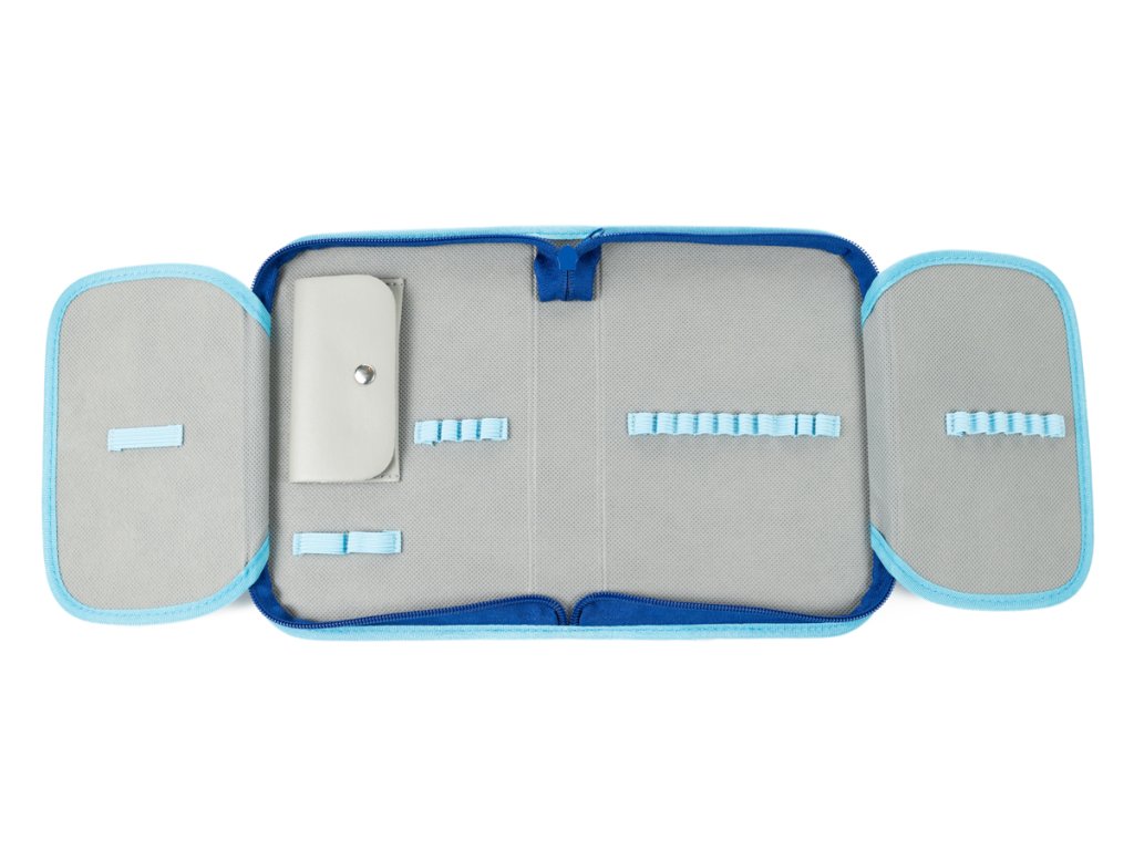 Jednopatrové penály mají velkou kapacitu k umístění psacích potřeb. 23 pevných gumiček různých velikostí k pohodlnému uložení větších pastelek nebo psacího pera, pravítka, ořezávátka a gumy. Vnitřní dvě chlopně mají na vnější straně průhlednou kapsičku na rozvrh či jiné malé dokumenty. Na vnitřní straně je kapsička na drobnosti, uzavíratelná patentem. Novinka: zipy jednopatrových penálů jsme letos vylepšili šňůrkou na jezdci zipu, který usnadní dětským prstům otevírání a zavírání penálu. Dokonale barevně sladěný design s aktovkou či batohem je samozřejmostí.Dodatočné parametre