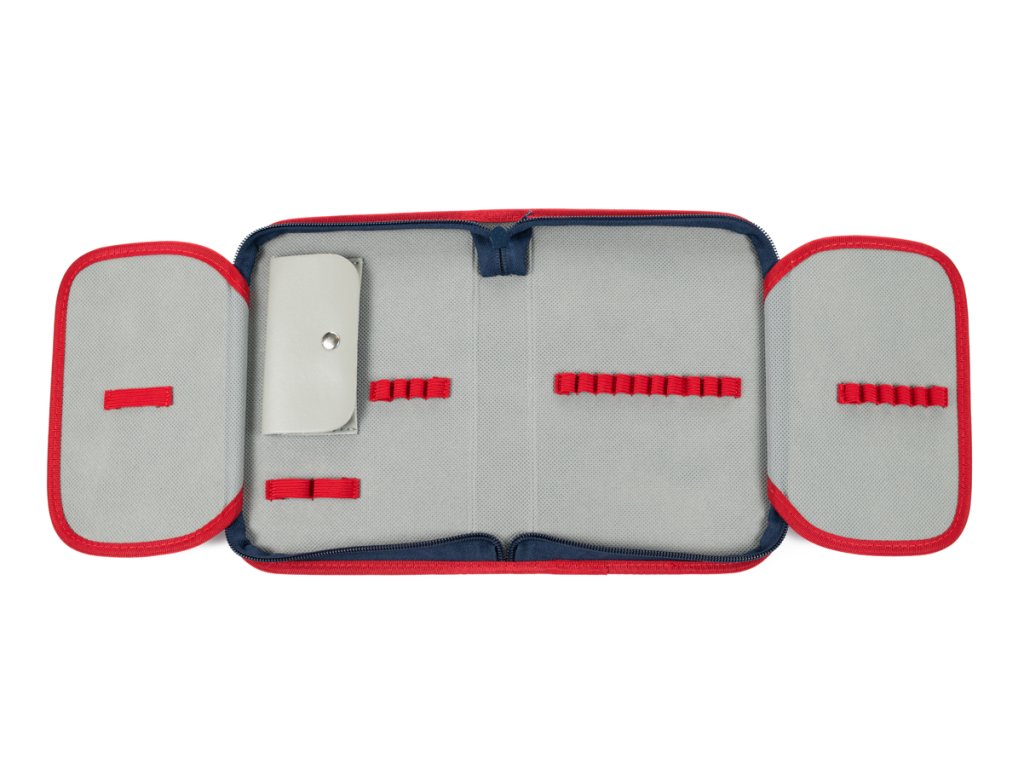 Jednopatrové penály mají velkou kapacitu k umístění psacích potřeb. 23 pevných gumiček různých velikostí k pohodlnému uložení větších pastelek nebo psacího pera, pravítka, ořezávátka a gumy. Vnitřní dvě chlopně mají na vnější straně průhlednou kapsičku na rozvrh či jiné malé dokumenty. Na vnitřní straně je kapsička na drobnosti, uzavíratelná patentem. Novinka: zipy jednopatrových penálů jsme letos vylepšili šňůrkou na jezdci zipu, který usnadní dětským prstům otevírání a zavírání penálu. Dokonale barevně sladěný design s aktovkou či batohem je samozřejmostí.Dodatočné parametre